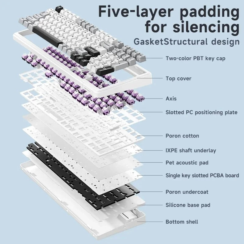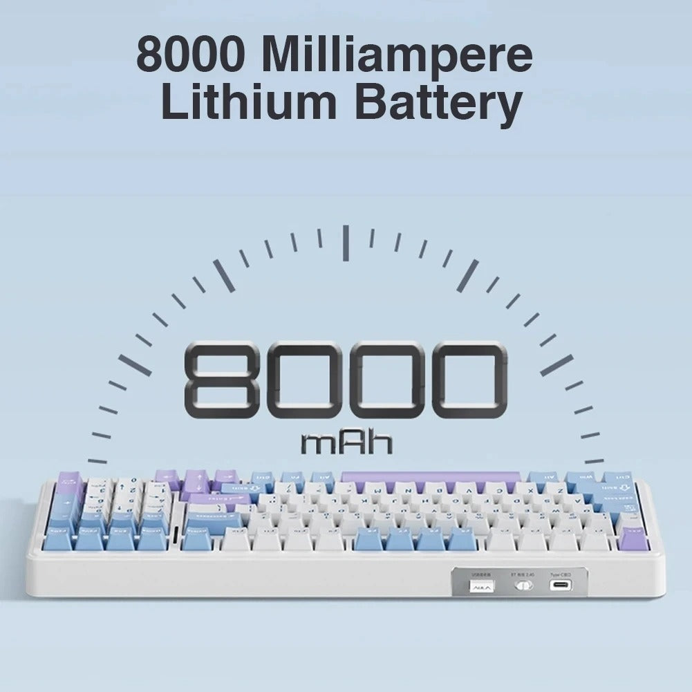 The Aula F99 Mechanical Keyboard is built for those who demand performance, versatility, and style. Whether you’re a gamer, professional, or multi-tasker, this keyboard adapts seamlessly to your lifestyle with USB-C wired, 2.4GHz wireless, and Bluetooth 5.0 connectivity. Switch between your laptop, desktop, iPad, tablet, or smartphone with just a tap—no delays, no interruptions.